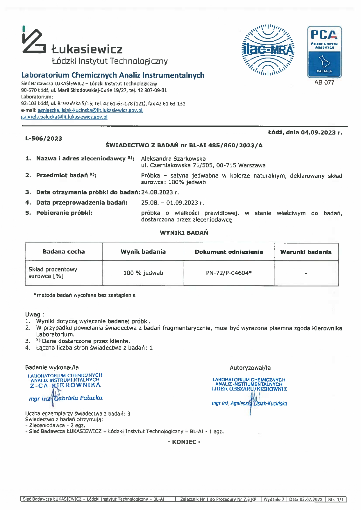 - Autentyczność naszego jedwabiu została potwierdzona również przez Łódzki Instytut Technologiczny – masz pewność, że wybierasz prawdziwy, naturalny jedwab.